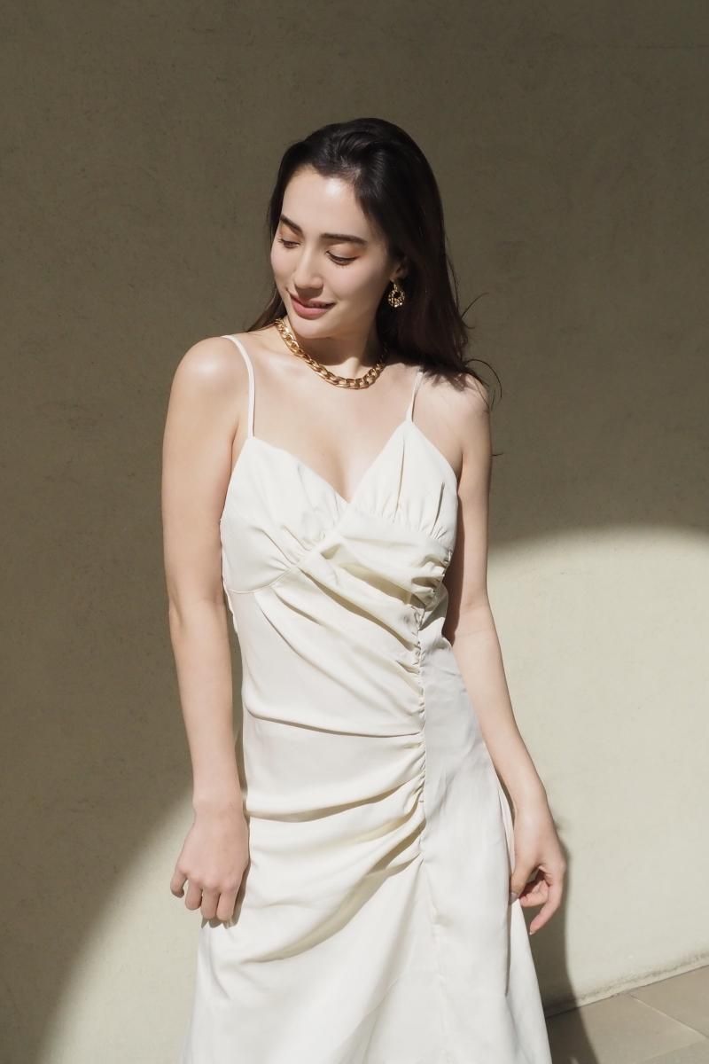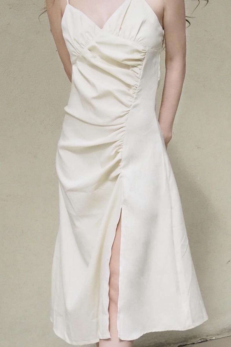 フロントは立体的にギャザーを寄せてシンプルになりがちキャミドレスも美しい仕上がりに!!