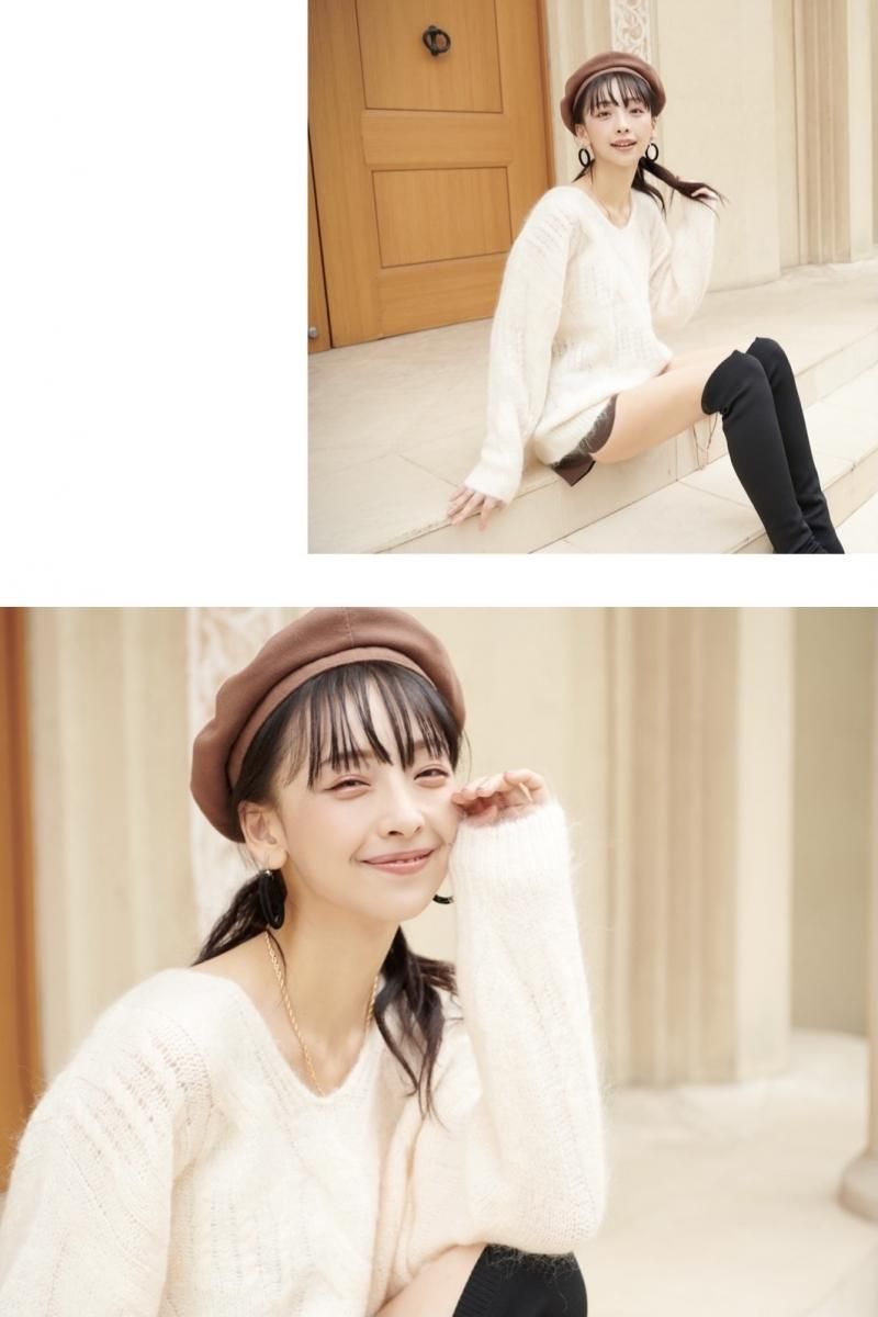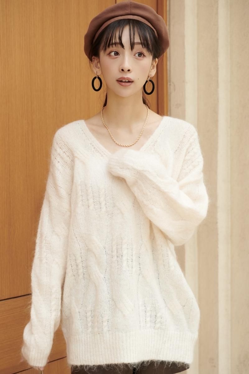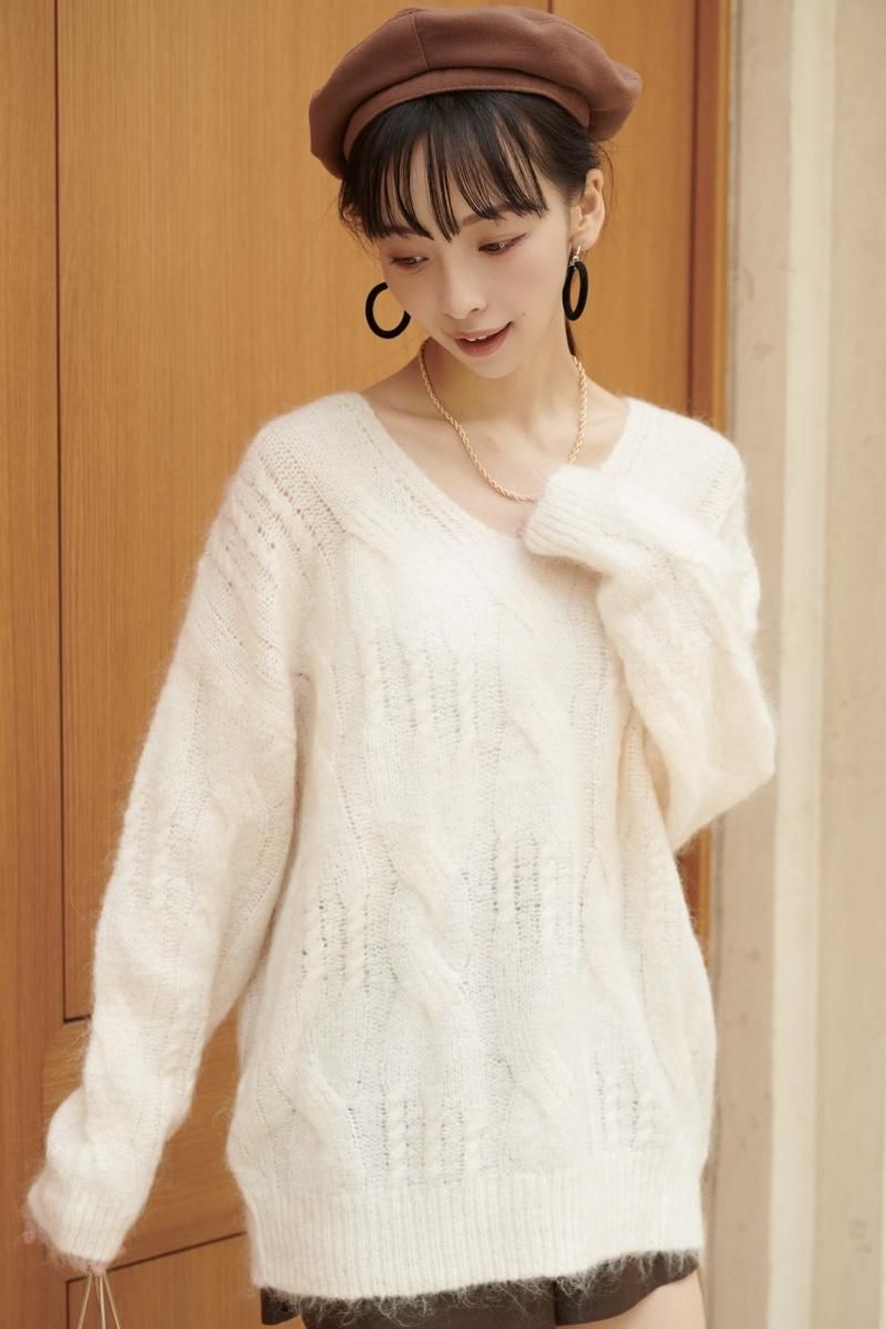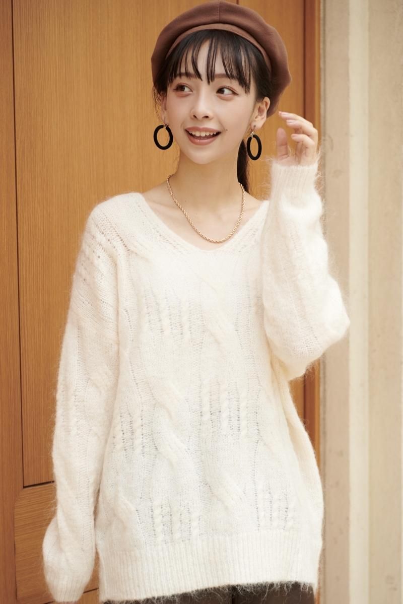 モヘアが入ったふわふわなニュアンスのケーブルニットセーターが登場!